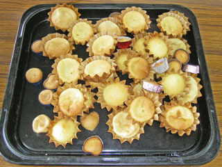 オリーブオイル 8 g グラニュー糖 15 g 全卵 15 g 薄力粉 15 g ベーキングパウダー 0.2 g レモンの汁 1/10個分 豆乳 3 cc オリーブオイル 少量 粉砂糖 適量
