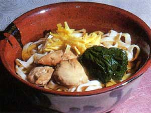 - 丼に3.のめんと、ささ身、たまご、ほうれん草を盛りだし汁をそそぐ。