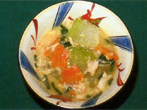 冬瓜 /100 g 水煮(ノンオイル)のツナ缶/15 g 人参/15 g かつおだし汁/50 g みそ/6 g ねぎ/3 g