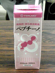 ●「無脂肪・消化態流動食 ペプチーノ」ってのをもらってきました。栄養剤。エレンタールみたなものかな?